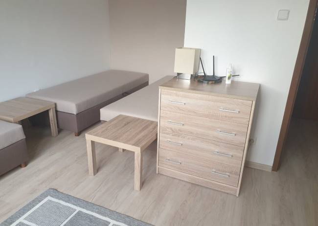 Ponúkam Vám na prenájom (dlhodobo) 1-izbový byt (typ bytu bauring) v Banskej Bystrici, v mestskej časti Fončorda na Tulskej ul. č. 105, nachádzajúci sa vo vnútornej sekcii bytového domu, na ideálnom stredovom podlaží v deväť poschodovom zateplenom bytovom dome s novým výťahom, orientovaný na Západ. Nehnuteľnosť je po čiastočnej rekonštrukcii, je pekný, čistý s dostatkom denného svetla. Má plastové okná so žalúziami, vymenené podlahy, svetlé -bledé farby na stenách aj stropoch, kuchynská linka je nová s elektrickou 2 platňou, kúpeľňa je murovaná s vaňou a je spoločná s WC. Na chodbe je priestranná vkusná šatníková skriňa. Denná izba (obývačka) je zaujímavo prepojená s výklenkom na nočnú časť. Je zariadený v základe funkčne. Ideálne pre 1-2- možno až 3- študentov.