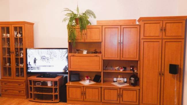 Byt sa predáva vyprataný so vstavanými skriňami a kuchynskou linkou. Podlahy laminátové a KD, nové stierky, rozvody el. energie medené, okná plastové vybavené sieťkami proti hmyzu.