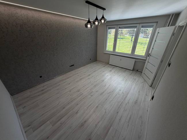 • odstránené pôvodné podlahy, nivelizácia a nová jednotná laminátová podlaha v celom byte