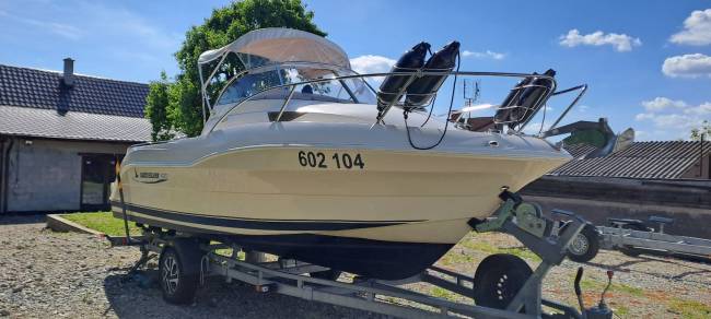 Čistá a zachovalá kajutová lod Quicksilver 620 Cruiser + motor Mercury 115hp EFI pr. 2020. K lodi je komplet BIMINI s bočnicami. Ide o model s perfektným vyvážením priestoru, hmotnosti a ceny. Loď prevážam na vleku 1800kg. Kajuta pojme 2 dospelých + dieťa, prípadne je možné použiť ďalšie rozkladacie lôžko na palube. Odvetranie kajuty uzatvárateľným oknom, osvetlenie, kvalitná hudba so zosilňovačom, USB zásuvky, guľatá 12V, úložné priestory. Pozičné osvetlenie, komplet bimini, prevozná plachta, odnímateľný stolík a sedačky, rozkladacie opaľovacie lôžko, pod palubou je veľký úložný priestor prístupný aj z kajuty, priestor pre chladničku. Odnímateľná kuchynka s varičom. Palubná sprcha, nádrž 67 litrov na vodu, nádrž na palivo 135litrov, automatické čerpadlo, 2x batéria, hydraulické riadenie, el. kotevný naviják na diaľkové ovládanie s reťazom, nerez zábradlie, nerez rebrík, keramická splachovacia toaleta – ktorá sa nepoužívala, miesto pre chemickú toaletu, GPS + echo, húkačka, celá paluba s príjemným EVA teakom, čistá a zachovalá loď na okamžité užívanie bez ďalších investícií. Celková dĺžka lode bez motora je 665 cm, registrované na SPS, vr. poistenia. Cena za loď s motorom 115hp je 34 000, - EUR. Teraz po zľave cena 28 000,00 EUR